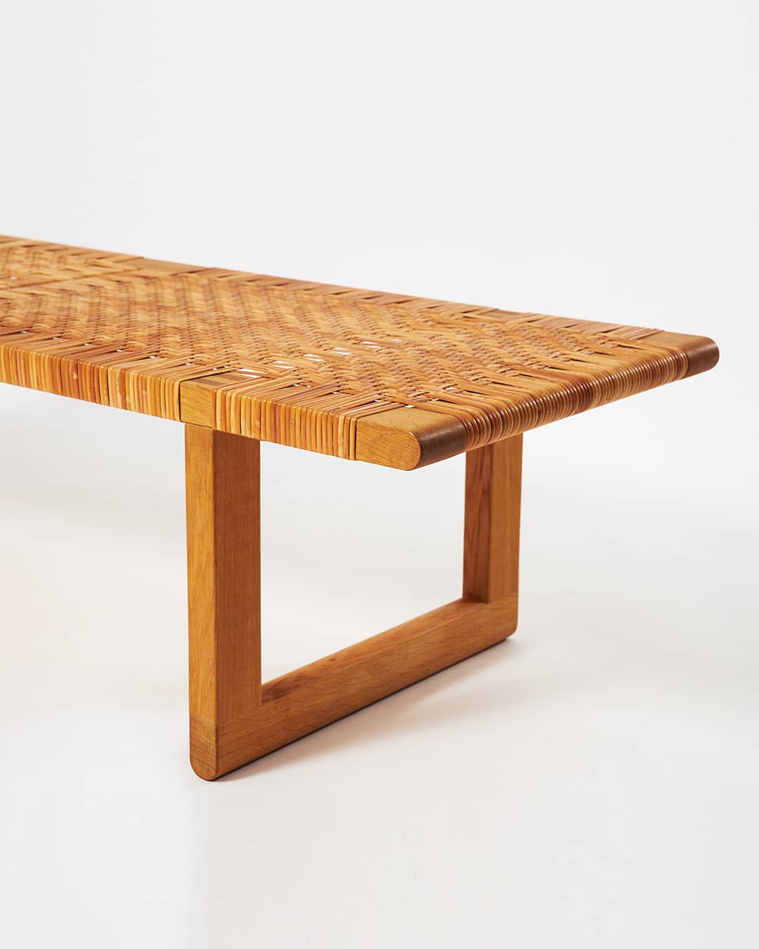 Formgiven 1958 av Børge Mogensen och producerad av Carl Hansen & Søn. Bänken är utförd i massiv ek med handflätad sits i rotting och speglar Mogensens fokus på funktionella och hållbara vardagsmöbler. Den är utformad för att kunna användas både som sittmöbel och som bord, vilket är karakteristiskt för hans rationella och användarcentrerade designfilosofi.