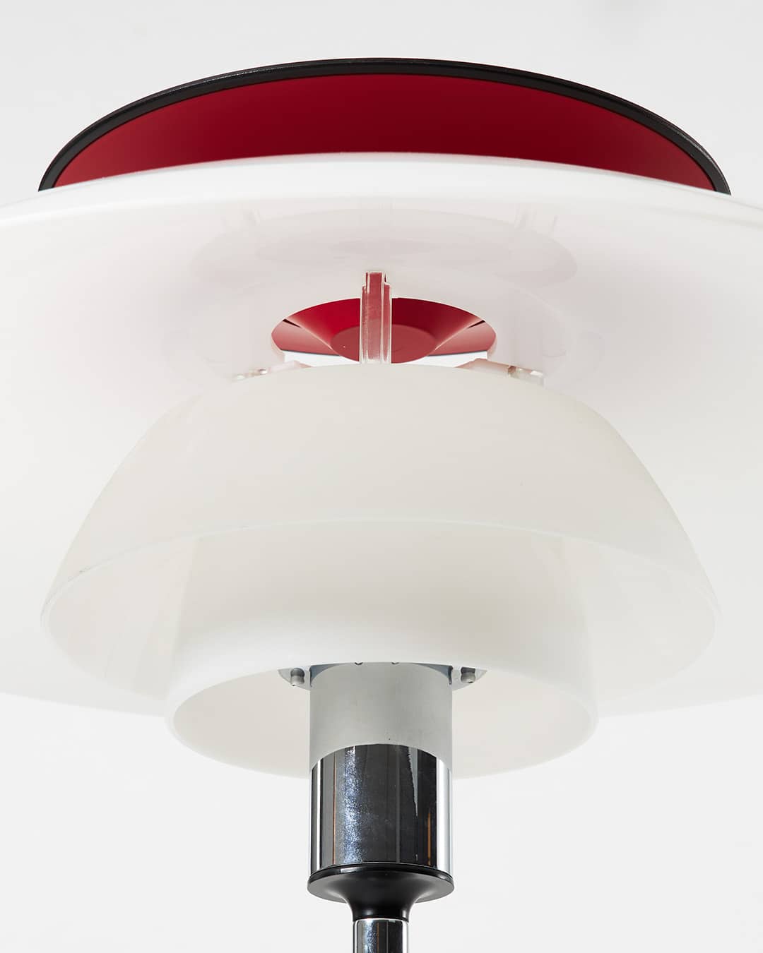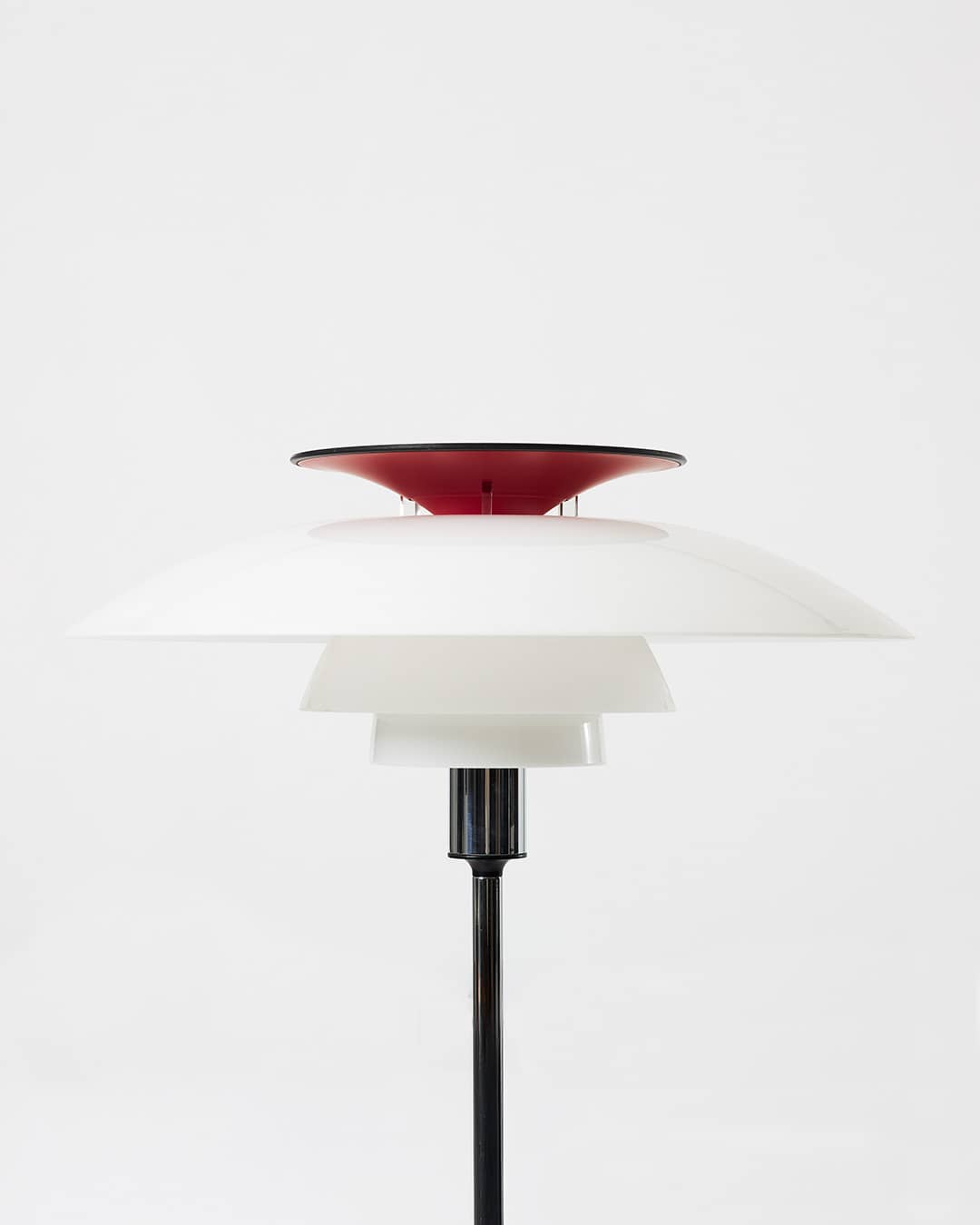 PH 80 skiljer sig från tidigare modeller i serien genom materialvalet, där opalakryl ersätter glas i skärmarna. Den röda reflektorn är inte enbart en färgaccent utan bidrar till ett varmare och mer behagligt ljus. Kombinationen av material och färg ger lampan ett något mjukare uttryck än tidigare PH-modeller. Den tillhör de mer lättillgängliga varianterna i serien, samtidigt som den behåller Henningsens grundläggande ljusprinciper.